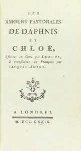 ---1779---. LIBRO: ---(LITERATURA-BIBLIOFILIA ANTIGUA)---. ---LONGUS:--- ---LES AMOURS PASTORALES DE DAPHINIS ET CHLOÉ, ECRITES EN GREC PAR...--- Trad. Jacques Amyot. Londres: s. imp., 1779. 8º menor. Frontis grabado + 176 p. + 29 lám. grabadas,...