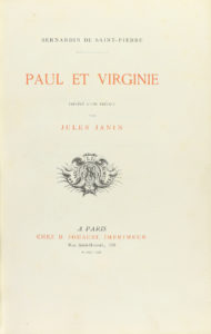---1869---. LIBRO: ---(BIBLIOFILIA)---. ---SAINT-PIERRE, BERNARDIN DE:--- ---PAUL ET VIRGINIE.--- Prefacio de Jules Janin. Paris: Imp. Chez D. Jouaust, 1869. 4º menor. 1 h. + XXXIV p. + 1 h. + 206 p. + 5 h. Enc. en media piel, nervios, corte...