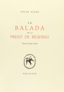 ---1950---. LIBRO: ---(BIBLIOFILIA)---. ---WILDE, OSCAR:--- ---LA BALADA DE LA PRESÓ DE READING.--- Trad. Joan Cortés. Barcelona: Tall. Salvador Cots, 1950. 4º menor. 91 p. + 2 h. En rama, rústica. Algún punto de óxido. Edición numerada de 60...