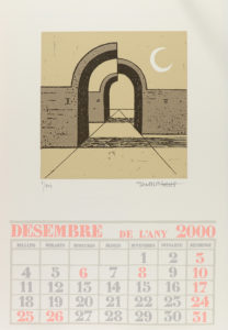 Curós, Jaume Carbonell, Orioll M. Diví, Sebastià Congost, Todó, Jaume Ribas, Miquel Plana y J. M. Subirachs. Edición numerada de 303 ejemplares sobre papel de hilo. [Más]: ---CALENDARI DE L´ANY 2001. Id.--- Contiene 12 linòleums originales firmados y numerados a lápiz por el artista. Edición numerada de 155 ejemplares. Ambos presentados en rama y carpeta de cartoné ilustr.