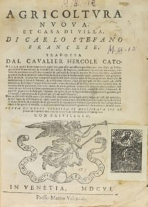---1606.--- LIBRO: ---(CAZA-AGRICULTURA)---. ---ESTIENNE, CHARLES:--- ---AGRICOLTURA NUOVA, ET CASA DI VILLA DI CARLO STEFANO FRANCESE, TRADOTTA DAL CAVALIER HERCOLE CATO [SIGUE:] GIOVANNI DI CLAMORGANO, LA CACCIA DEL LUPO, NECESSARIA ALLA CASA DI...