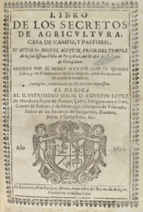 ---1695.--- LIBRO: ---(AGRICULTURA)---. ---AGUSTÍ, FR. MIGUEL:--- ---LIBRO DE LOS SECRETOS DE AGRICULTURA, CASA DE CAMPO Y PASTORIL. AÑADIDO POR EL MISMO AUTOR CON EL QUINTO LIBRO [CAZA], Y UN VOCABULARIO DE SEIS LENGUAS, PARA DECLARACIÓN DE...