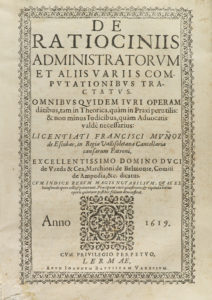 ---1619.--- LIBRO: ---(CONTABILIDAD-ADMINISTRACIÓN)---. ---MUÑOZ DE ESCOBAR, FRANCISCO:--- ---DE RATIOCINIIS ADMINISTRATORUM ET ALIIS VARIIS COMPUTATIONIBUS TRACTATUS. OMNIBUS QUIDEM IURI OPERAM DANTIBUS, TAM IN THEORICA, QUAM IN PRAXI PERUTILIS: &...