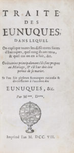 ---1707.--- LIBRO: ---(DERECHO-MATRIMONIO)---. ---[ANCILLON, CHARLES]:--- ---TRAITE DES EUNUQUES, DANS LEQUEL ON EXPLIQUE TOUTES LES DIFFERENTES SORTES D´EUNUQUES, QUEL RANG ILS ONT TENU, & QUEL CAS ON EN A FAIT, &C. ON ÉXAMINE PRINCIPALMENT S´ILS...