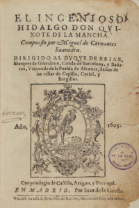 partes de de la obra de Cervantes que se conservan en la biblioteca de la Real Academia Española, que es edición de Juan de la Cuesta de 1605 y 1615. Con el certificado notarial. Se adjunta un librito de presentación escrito por Quintín Aldea, académico de la institución. El primera parte enc. en pasta española y la segunda en pergamino con cierres, como los ejemplares conservados.
