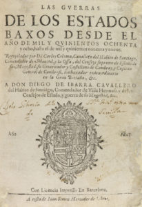 ---1627.--- LIBRO: ---(HISTORIA)---. ---COLOMA, CARLOS:--- ---LAS GUERRAS DE LOS ESTADOS BAXOS.--- Barcelona: en casa de la viuda Elizabet Tomasa, 1627. 8º mayor. 327 p. + 1 h. La última h. con el colorón y la portada remontadas. Texto con...
