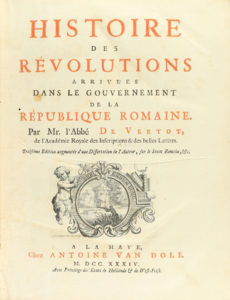 ---1734---. LIBRO: ---(HISTORIA-ROMA)---. ---VERTOT:--- ---HISTOIRE DES RÉVOLUTIONS ARRIVÉES DANS LE GOUVERNEMENT DE LA RÉPUBLIQUE ROMAINE.--- La Haye: Chez Antoine van Dole, 1734. 4º menor. 3 h. + VIII + 1 h. + 422 p. + 9 h. [Sgue:]...