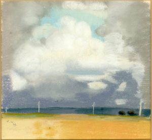 "Vers Percy" (1949). Pastel sur papier, daté, monogrammé au coin infér. gauche et monté sous passe-partout et cadre en bois. Dim. cadre : 39,5 x 40 cm ; sujet : 16,5 x 18 cm. Peintre de paysages, de fleurs et de natures mortes, Zoum Walter (Bruxelles, 1902 - Paris, 1974) utilise également le pastel et conçoit des lithographies. Fille et élève de J. Vanden Eeckhoudt, elle est marquée par le fauvisme et réalise des oeuvres très coloriées aux formes schématisées.