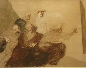 "La Compagnie bourgeoise" (1973). Lithographie originale en couleurs, just. 10/160, signée au crayon et montée sous passe-partout blanc et cadre doré en bois. Dim. cadre : 75,5 x 92 cm ; sujet : 77 x 56 cm. Certificat d'authenticité joint.