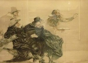 "La Visite des drapiers" (1973). Lithographie originale en couleurs, just. 111/160, signée au crayon et montée sous passe-partout blanc et cadre doré en bois. Dim. cadre : 72 x 92 cm ; sujet : 76 x 54,5 cm. Certificat d'authenticité joint.