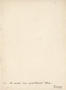 Carte de voeux (1960). Carnet vierge de 24 pages présentant 1 petite perforation croissante au fur et à mesure des pages ; la dernière page comporte le collage d'un petit carré noir, qui correspond au fond de l'orifice. Pièce unique, justifiée 1/1 et signée à l'encre noire.