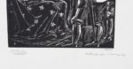 René-Yves CRESTON (1898-1964) Arthur II refusant l’hommage-lige Gravure sur bois monogrammée dans la planche, titrée, mention «1er état» et signée au crayon. Porte au dos le n° 25 en rouge. Trous de punaises aux angles, petites usures, petite pliure et petites taches dans la marge. Dim. 50 x 32,5 cm