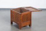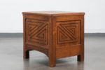 On retrouve ces panneaux sculptés de chaque côté du coffre. La structure présente des angles chanfreinés. Usures d’usage Haut. 47,5 cm x Long. 50 cm x Prof. 40 cm Ensemble mobilier réalisé pour Louise Gloux, proche amie de Jeanne Malivel à Loudéac, vers 1922.