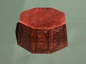 Jeanne MALIVEL (1895-1926) Socle en bois massif à patine claire. De forme trapézoïdale, il est orné de lignes brisées à motifs celtiques stylisés, incisées et surlignées en noir. Usures d’usage Haut. 19,5 cm x Long. 28,5 cm x Prof. 14 cm Ce socle a été présenté à l’exposition «Jeanne Malivel, une artiste engagée» à la Bibliothèque Forney à Paris qui s’est tenue du mercredi 8 mars au samedi 1er juillet 2023. Ensemble mobilier réalisé pour Louise Gloux, proche amie de Jeanne Malivel à Loudéac, vers 1922. Cet ensemble a été réalisé par Julien Bacon (1892-1980) dans l’Atelier Saint Guénolé à Caurel. Une étude du piétement des chaises de cet ensemble, datée de décembre 1921, est reproduite dans l’ouvrage d’Olivier Levasseur «Jeanne Malivel, une artiste engagée», éd. Locus Solus, 2023, page 50. Bibliographie : - Daniel Le Couedic et Jean-Yves Veillard (dir.), Ar Seiz Breur 1923-1947, la création bretonne entre tradition et modernité , éd. Terre de Brume - musée de Bretagne, 2000 - Bernard-Jules Verlingue, sous la dir., «Jeanne Malivel pionnière de l’art moderne breton», éd. amis du musée & de la faïence de Quimper, 2018 - Olivier Levasseur «Jeanne Malivel, une artiste engagée», éd. Locus Solus, 2023 Cet ensemble mobilier est vendu au profit de l’association caritative des Orphelins d’Auteuil.