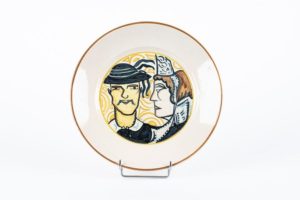 Pierre ABADIE-LANDEL (1896-1972) Couple de Bretons Assiette en faïence émaillée polychrome Manufacture HB Quimper, vers 1924/1925 Signée au revers du monogramme «PAL» et marque de peinteur. Diam. 24,5 cm Cette assiette est à rapprocher d’une assiette au couple de marins conservée au musée de Bretagne. Bibliographie : - Daniel Le Couedic et Jean-Yves Veillard (dir.), Ar Seiz Breur 1923-1947, la création bretonne entre tradition et modernité , éd. Terre de Brume - musée de Bretagne, 2000.