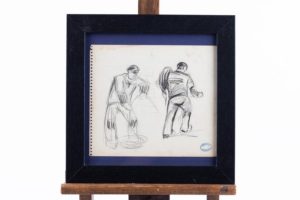 Pierre ABADIE-LANDEL (1896-1972) Deux marins, un levant un cordage, l’autre marchant cordage sur l’épaule Crayon noir, cachet de l’atelier en bas à droite Traces d’humidité, quelques rousseurs Dim. 18 x 20,5 cm Bibliographie : - Collectif, «Pierre Abadie-Landel 1896-1972», éd. ASIA, 2018