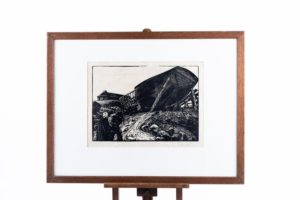 René-Yves CRESTON (1898-1964) Le nouveau-né Gravure sur bois, 1930 Titrée et signée en bas à droite et numérotée «12» en bas à gauche. D’un tirage de 35 exemplaires. Toutes marges. Usures et taches. Dim. à vue 27,5 x 38 cm Dim. avec cadre 49,5 x 64,5 cm Provenance : ancienne collection Gaston Sébilleau. Le nouveau-né, c’est à la fois ce bateau en construction dans le chantier naval et l’enfant que porte ce jeune couple de Douarnenistes venu admirer son imposante coque. Bibliographie : - Olivier Levasseur, «Trait d’Union, le Design en Bretagne 1922-2010», éd. Galerie Mica, 2010.