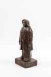 Joseph SAVINA (1901-1983) L’Islandais Sculpture de taille directe en chêne massif patiné Atelier d’Art Celtique, Tréguier, vers 1930 Titrée en façade, signée au dos du socle «J. SAVINA» et du monogramme de la période Seiz Breur de Joseph Savina. Petites usures, fente dans le bois au dos. Haut. 46 cm Bibliographie : - Pierre Guéguen, «Joseph Savina» in «Bretagne», n° 105, 1932, citation page 197. - Philippe Bonnet, Daniel Le Couédic, Philippe Le Stum, «La puissance et la grâce, sculpteurs bretons 1900- 1950», Château de Kerjean, 1998 - Daniel Le Couédic et Jean-Yves Veillard (dir), «Ar Seiz Breur 1923-1947, la création bretonne entre tradition et modernité», éd. Terre de Brume - musée de Bretagne, 2000 - Yves Brand’honneur et Pascal Aumasson «Savina Le Corbusier, de l’art celtique à la sculpture moderne» éd. Locus Solus, 2021. Modèle similaire reproduit page 164. Cette sculpture est imprégnée d’un cubisme presque sauvage; «géométrique comme un iceberg»; elle fait écho à la nature souvent hostile et au métier dur et ingrat de ces gars de la mer, des côtes du Trégor et du Goëlo, à qui elle rend hommage : les pêcheurs d’Islande. OEuvre puissante, taillée à la gouge et à l’herminette, dont chacune des facettes reflète la lumière au point qu’un infime mouvement en modifie entièrement l’aspect, cet «Islandais» est une sculpture majeure de Joseph Savina. Ce modèle, réalisé à quelques exemplaires, figure sur une vue du magasin d’exposition de l’Atelier d’Art Celtique de la rue Saint-André à Tréguier, carte postale éditée vers 1930 et conservée au musée de Bretagne à Rennes.