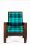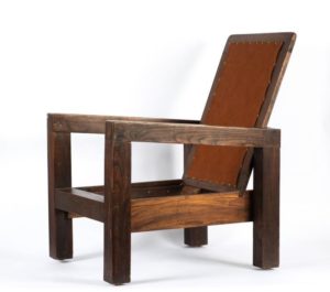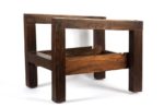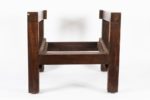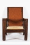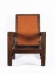 Joseph SAVINA (1901-1983) Fauteuil Châtaignier patiné Atelier d’Art Celtique, Tréguier, vers 1930 Structure constituée de montants pleins de section carré, assise et dossier amovibles. Ceinture en pin teinté. Prototype. Le dossier destiné à accueillir une tapisserie. Assise rapportée. Haut. 89 cm x Long. 65 cm x Prof. 68 cm Ce fauteuil, par son montage, est à rapprocher des fauteuils de l’ensemble mobilier «Ar Braz» dessiné par René-Yves Creston et réalisé par Joseph Savina en 1935, sur une commande de Fanch Eliès. Cet ensemble est conservé au musée de Bretagne. Notre modèle, de fabrication antérieure, est un essai qui mènera Joseph Savina vers la fabrication de ses fauteuils à montants méplats à section en «T».