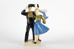 Robert MICHEAU-VERNEZ (1907-1989) Couple de Penmarc’h Groupe en faïence émaillée polychrome …