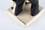Robert MICHEAU-VERNEZ (1907-1989) Couple de Penmarc’h Groupe en faïence émaillée polychrome Manufacture Henriot Quimper, vers 1947 Signée sur la base «R. Micheau-Vernez» et au revers «Henriot Quimper». Petites usures. Haut. 37 cm x Long. 25 cm x Prof. 17,5 cm Modèle créé pour l’édition en juin 1941, notre couple est un tirage un peu plus tardif, vers 1947. Il porte au revers au crayon la date manuscrite «9-2-(19)48» qui correspond probablement à la date d’achat de cette pièce. L’oeuvre de Robert Micheau-Vernez, reconnaissable entre toutes, a ceci de remarquable qu’elle introduit l’idée de mouvement dans la sculpture, par définition statique : la force du vent renforce la puissance du lien qui unit nos amoureux. Bibliographie : - Philippe Théallet et Mikaël Micheau-Vernez, «Micheau-Vernez, l’oeuvre de faïence», Groix éditions, 2019. Modèle similaire reproduit p. 89. - Bernard-Jules Verlingue et Philippe Théallet, «Encyclopédie des céramiques de Quimper», tome V, éd. de la Reinette, 2007.