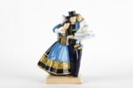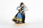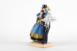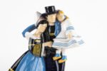 Robert MICHEAU-VERNEZ (1907-1989) Couple de Fouesnantais et leur bébé Groupe en faïence émaillée polychrome Manufacture Henriot Quimper Signée sur la base «R. Micheau-Vernez» et au revers «Henriot Quimper» Tirage vers 1941/1942. Petites usures. Haut. 36,5 cm x Long. 21 cm x Prof. 15 cm Beau tirage d’un sujet réalisé en plusieurs étapes entre 1940 et 1941.