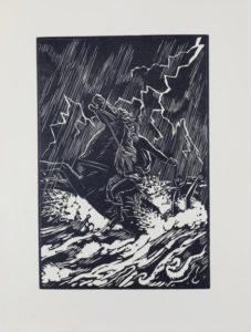 René-Yves CRESTON (1898-1964) Gradlon Gravure sur bois sur papier «Mécanographie Guérinand Voiron» monogrammée dans la planche Petites usures dans la marge Dim. 43,5 x 32,5 cm
