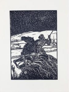 René-Yves CRESTON (1898-1964) Les juifs sont chassés de Bretagne Gravure sur bois sur papier «Mécanographie Guérinand Voiron» monogrammée dans la planche Petites taches dans la marge Dim. 43,5 x 32,5 cm