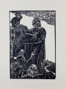 René-Yves CRESTON (1898-1964) Saint Yves Gravure sur bois sur papier «Mécanographie Guérinand Voiron» monogrammée dans la planche Petites taches dans la marge Dim. 43,5 x 32,5 cm