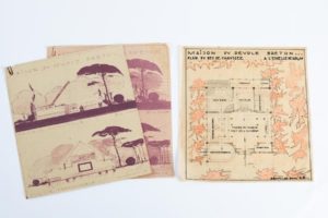 André BATILLAT (1901-1965) Cinq planches d’un projet pour une Maison du peuple breton Encre, …
