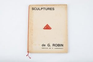 Jorj ROBIN (1904-1928) Sculptures de J. Robin (1904-1928) Plaquette commémorative, probablement réalisée par R.Y. Creston pour Keltia et achevée d’imprimer en juillet 1931. Elle est composée d’une préface-hommage par Paul Ladmirault, musicien et compositeur nantais, du buste de Jorj Robin par Le Bozec et de 31 planches représentant les diverses réalisations d’un des fondateurs du mouvement Seiz Breur, prématurément disparu en 1928, atteint par la tuberculose. La numérotation des planches de 17 à 48 est conforme à la description de l’ouvrage Plaquette in-4, 38 p. assemblées par un cordon rouge. Quelques rousseurs sur le pourtour de la couverture. Intérieur très frais. Dim. 22 x 27,5 cm Rare documentation, tirée à 200 ex. Cette plaquette reprend pour partie les éléments de l’ouvrage JORJ ROBIN SKULTER VRETON édité par Keltia en 1931.