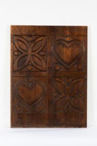 Rafig TULLOU (1909-1990) Panneau de boiserie Chêne massif sculpté à la gouge et au ciseau à bois, 1949. Usures Dim. 86 x 65 cm Bibliographie : - Daniel Le Couedic et Jean-Yves Veillard (dir.), Ar Seiz Breur 1923-1947, la création bretonne entre tradition et modernité , ed. Terre de Brume - musée de Bretagne, 2000 - René Trotel, «Le mobilier breton», éd. Coop Breizh, 2009