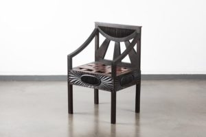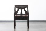 Jeanne MALIVEL (1895-1926) Exceptionnel fauteuil à décor rayonnant. Chêne teinté et lanières …