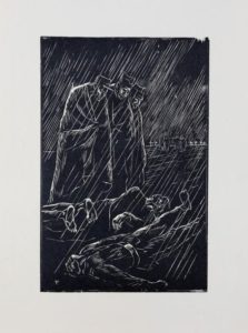 René-Yves CRESTON (1898-1964) Conlie Gravure sur bois sur papier «Mécanographie Guérinand Voiron» monogrammée dans la planche. Petites taches dans la marge. Dim. 43,5 x 32,5 cm