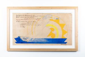René-Yves CRESTON (1898-1964) Gouache préparatoire à «Kan da Gornog» Importante gouache sur papier contrecollé Signée en bas à droite Tampons d’exposition au dos Pliures, usures et déchirures Dim. à vue 44 x 84 cm Reprenant les vers d’un passage du poème épique «KAN DA KORNOG» de Youenn Drezen, R.Y. Creston figure dans cette grande gouache l’âme d’un guerrier celte s’envolant pour poursuivre l’épopée de son peuple vers la terre de Bretagne. Elle a été présentée lors de l’exposition Ar Seiz Breur 1923-1947, la création bretonne entre tradition et modernité au musée de Bretagne à Rennes en 2000. Provenance : ancienne collection Youenn Drezen