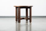 Joseph SAVINA (1901-1983) Guéridon Chêne ciré Quatre pieds décorés de feuillage en réserve …