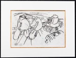 MEHEUT Mathurin, 1882-1958 Marins en mer préparant les casiers fusain sur papier pelure …