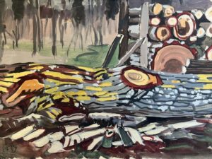 MEHEUT Mathurin, 1882-1958 Bûches et troncs en forêt gouache (petits accidents et traces de plis …