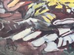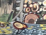 MEHEUT Mathurin, 1882-1958 Bûches et troncs en forêt gouache (petits accidents et traces de plis aux angles), monogramme à l'encre de Chine en bas à gauche, au dos cachet Mathurin Méheut Lamballe, cachet PARTAGE MM 2006 , inscription F forêt 107-B au crayon noir 22,5x32,5 cm. Expert : Michel MAKET