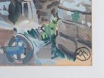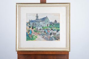 MEHEUT Mathurin, 1882-1958 Femmes au lavoir de Locronan, gouache sur papier beige (infime déchirure à l'angle en haut à droite), monogramme en bas à droite et situé en bas à gauche 24x29 cm à vue. Expert : Michel MAKET