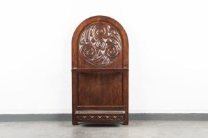 Jacques PHILIPPE (1896-1959) Porte-parapluie d'applique Chêne massif sculpté à décor celtique Rennes, vers 1935 Usures d'usage Haut. 100 cm Long. 51.5 cm Prof. 14.5 cm D’origine guingampaise, le sculpteur et ébéniste Jacques Philippe a installé son « Atelier d’Art Celtique » rue Hoche à Rennes. Il a meublé les intérieurs de nombreuses personnalités de la vie rennaise et plus largement bretonne. Membre de la Société des artistes français, son style est proche de celui des Seiz Breur auxquels il est régulièrement assimilé. Le musée de Bretagne à Rennes et le musée breton de Quimper conservent de nombreux meubles de Jacques Philippe.