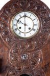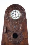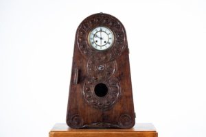 Jacques PHILIPPE (1896-1959) Pendule borne Chêne sculpté d'entrelacs celtiques Rennes, vers 1935 Etiquette "Atelier d'Art Celtique de Jacques Philippe sculpteur décorateur" Manque le balancier Haut. 65 cm Long. 39 cm Prof. 14 cm D’origine guingampaise, le sculpteur et ébéniste Jacques Philippe a installé son « Atelier d’Art Celtique » rue Hoche à Rennes. Il a meublé les intérieurs de nombreuses personnalités de la vie rennaise et plus largement bretonne. Membre de la Société des artistes français, son style est proche de celui des Seiz Breur auxquels il est régulièrement assimilé. Le musée de Bretagne à Rennes et le musée breton de Quimper conservent de nombreux meubles de Jacques Philippe.