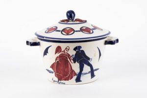 Louis GARIN (1888-1959) Légumier "La danse" Faïence émaillée polychrome Manufacture HB Quimper, vers 1925 Signé "Louis Garin" dans le décor et au revers. Petits sauts d’émail au couvercle Haut. 23 cm Diam. 22 cm