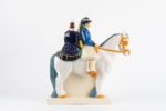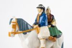 Emile-Just BACHELET (1892-1981) Les mariés à cheval Important groupe en faïence émaillée polychrome Manufacture Henriot Quimper, vers 1925 Signé au revers du monogramme "EJB" et "Henriot Quimper" Egrenures sur un angle Haut. 48 cm Long. 50 cm Prof. 17 cm
