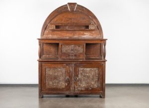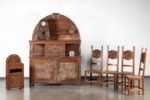 Jacques PHILIPPE (1896-1959) Important bahut sculpté Bois massif sculpté d'entrelacs celtiques Rennes, vers 1930 Importantes usures et patine d’usage Haut. 224 cm Long. 160 cm Prof. 50 cm D’origine guingampaise, le sculpteur et ébéniste Jacques Philippe a installé son « Atelier d’Art Celtique » rue Hoche à Rennes. Il a meublé les intérieurs de nombreuses personnalités de la vie rennaise et plus largement bretonne. Membre de la Société des artistes français, son style est proche de celui des Seiz Breur auxquels il est régulièrement assimilé. Le musée de Bretagne à Rennes et le musée breton de Quimper conservent de nombreux meubles de Jacques Philippe.