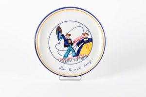 Marc’harit HOUEL (1907-2002) Par le petit doigt Plat en faïence polychrome émaillé …