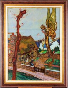 CORNELIUS Jean-Georges, 1880-1963 L'ange de l'Annonciation, huile sur papier beige marouflé sur toile (restaurations), signé en haut à gauche 99x72 cm. Expert : Michel MAKET