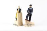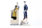 François CAUJAN (1902-1945) Couple de bretons Deux sujets formant serre-livres Faïence …