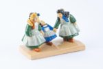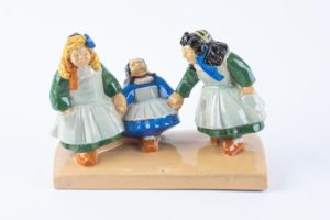 Jim E. SEVELLEC (1897-1971) Manufacture Henriot Quimper Les trois fillettes du pays bigouden Groupe en faïence émaillée polychrome Manufacture Henriot Quimper Signé au revers "JE Sevéllec" et "Henriot Quimper 136" Haut. 17.5 cm - Larg. 24 cm - Prof. 12 cm