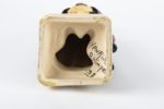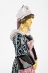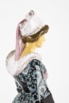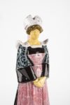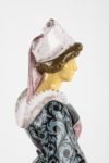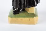 Louis-Henri NICOT (1878-1944) Janedik CUEFF Statue en faïence émaillée polychrome Manufacture Henriot Quimper, vers 1927 Signée « LH NICOT » en creux sur la terrasse et au revers « HenRiot Quimper 138 » Petite égrenure sur le nez, sauts d’émail sur la coiffe. Haut. 39.5 cm Long. 11.5 Prof. 12 cm Un exemplaire similaire est conservé au musée de Pont-Aven.
